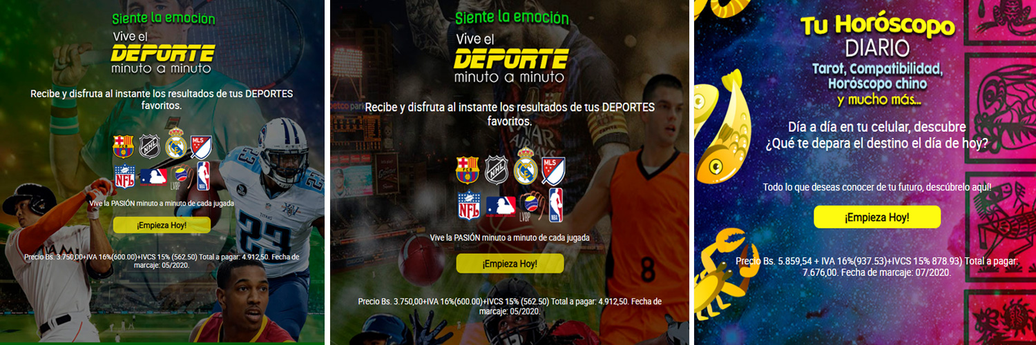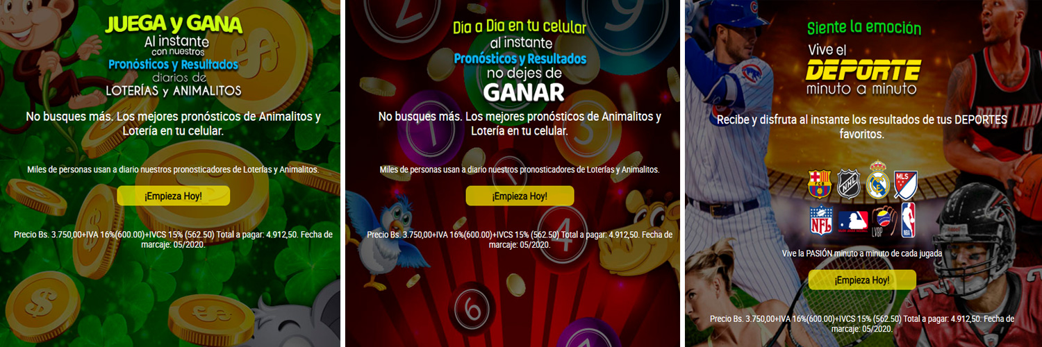 Diseño de website responsive con diseño asociado al contenido del servicio Deportes, Loterías y Horóscopos.